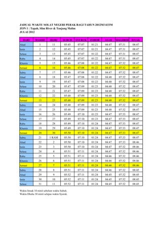 Waktu Solat Kawasan Tanjung Malim Perak Pdf